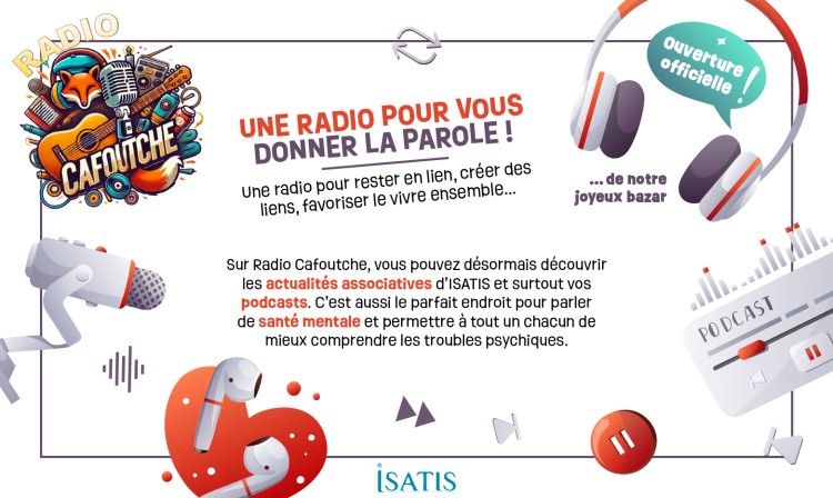 En écoutant radio Cafoutche, vous allez découvrir à travers diverses rencontres les personnes que nous croisons à ISATIS. Elles vous racontent leur quotidien en partageant différentes sortes de témoignages mais aussi leur créativité et talents artistiques.
