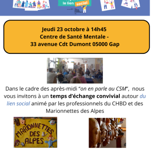 Cet évenement national a eu lieu en 2025 du 6 au 19 octobre, sur le thème "pour ma santé mentale, réparons le lien social".